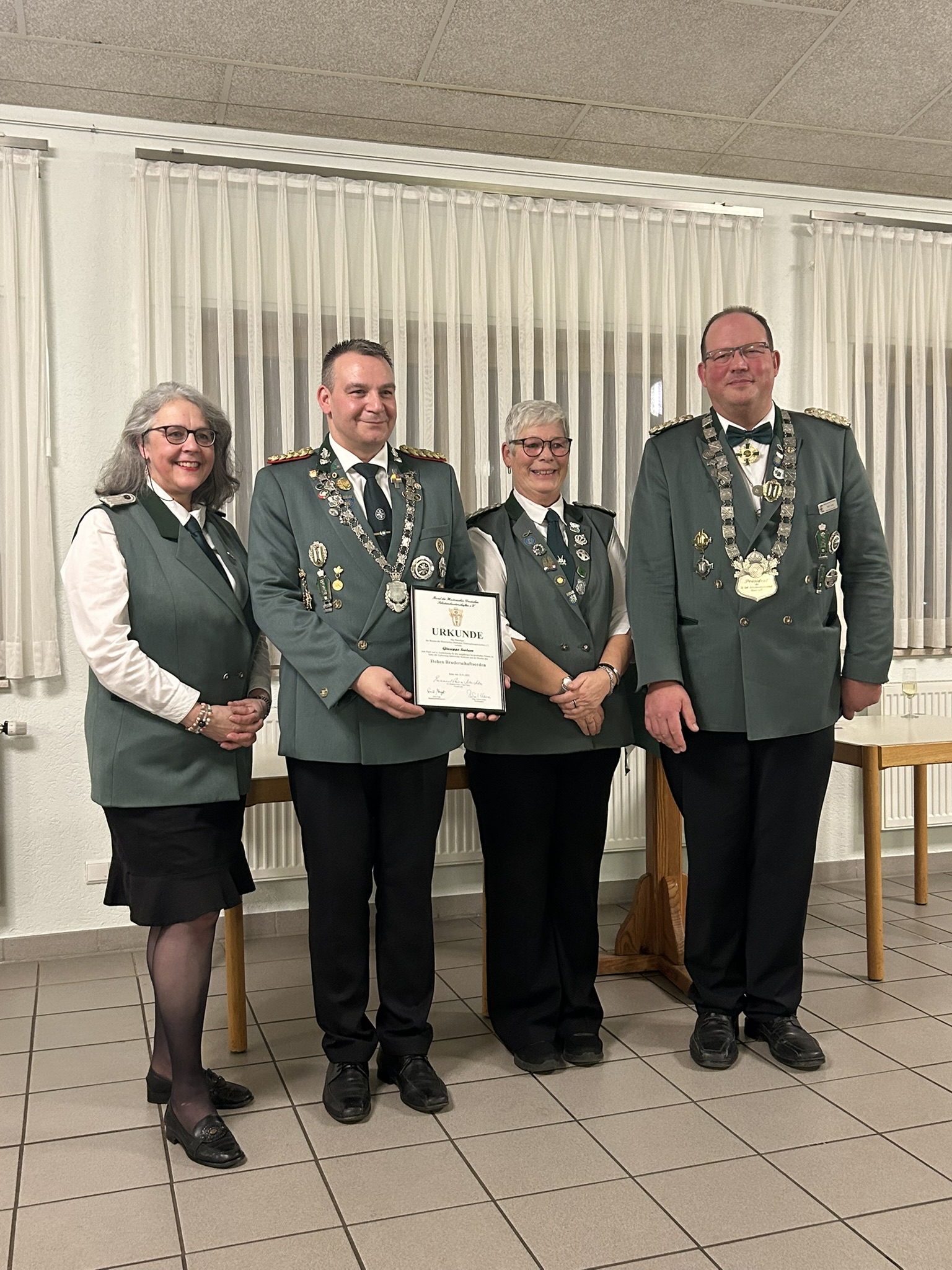 Am Abend darauf, am Samstag, dem 18.01., versammelte sich die Schützenfamilie erneut im Vereinsheim, diesmal zum Patronatsfest. Nach der Begrüßung durch den Präses Jürgen Arnold fanden feierliche Auszeichnungen statt. Das Schöne dabei war, dass nicht nur die Besten in verschiedenen Disziplinen geehrt wurden, sondern auch die langjährig ehrenamtlich engagierten Frauen und Männer, die durch ihr Mitwirken das Vereinsleben über die Generationen hinaus so lebenswert gestalten. Denn auch so genannte „Inaktive“ sind ein Teil der Schützenfamilie, in der neben dem traditionellen Schießen auch der zwischenmenschliche Zusammenhalt gelebt wird.