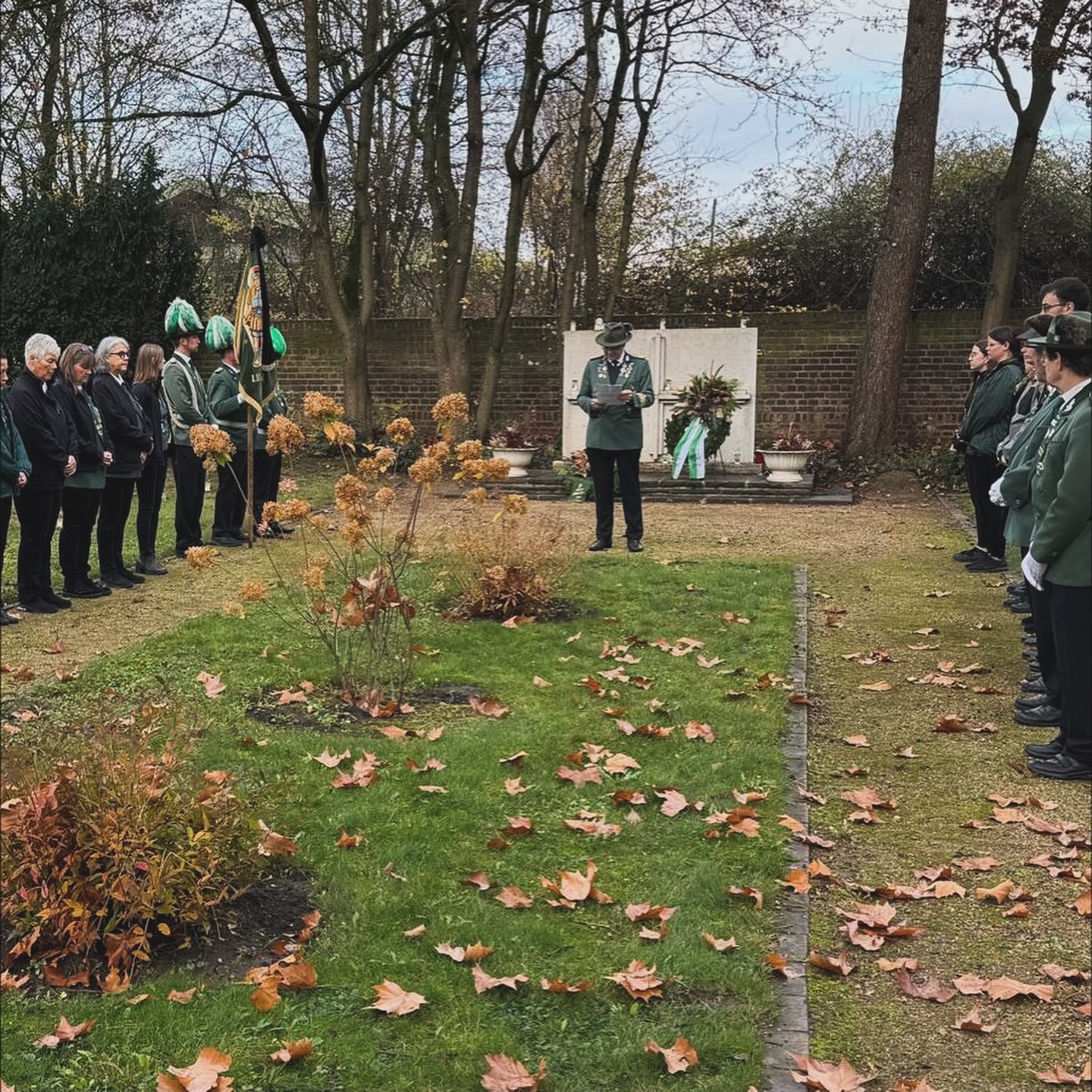 Am 16. November 2025 haben unsere Schützen gemeinsam mit unserer Ortsbürgermeisterin Petra Dünnwald am Ehrenmal auf dem Friedhof in Erftstadt-Liblar den Volkstrauertag begangen. Gemeinsam hielten wir inne, legten einen Kranz nieder und gedachten der Opfer von Krieg, Gewalt und Terror.