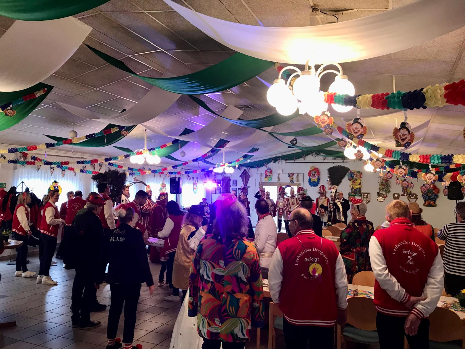 Die in diesem Jahr besonders zahlreich erschienenen Besucherinnen und Besucher erfreuten sich an den Auftritten von den Tollitäten aus Hürth-Gleuel, Erftstadt-Dirmerzheim und Erftstadt-Lechenich. Durch Musikklänge, Lachen und Glanz der farbenfrohen Kostüme wurde ein grauer kalter Februardienstag zu einem rauschenden Fest!